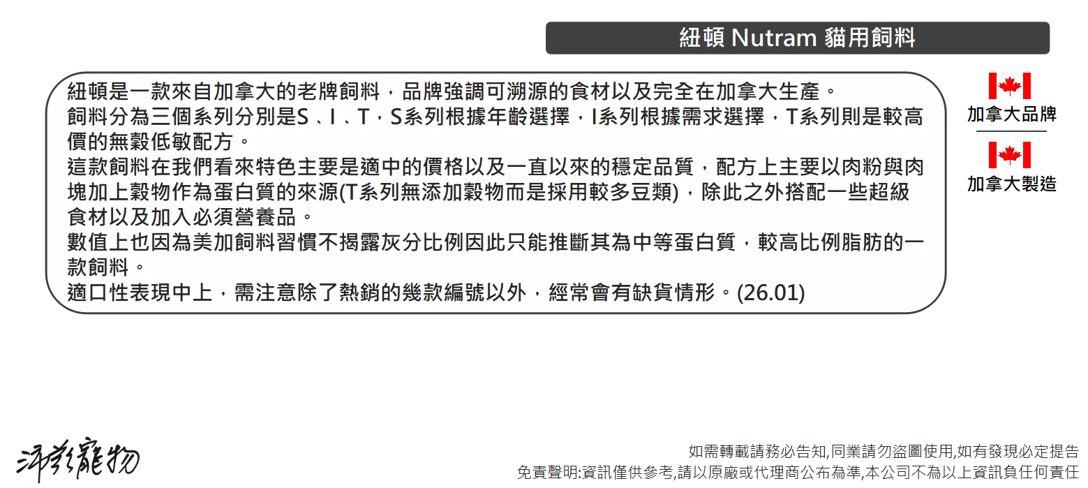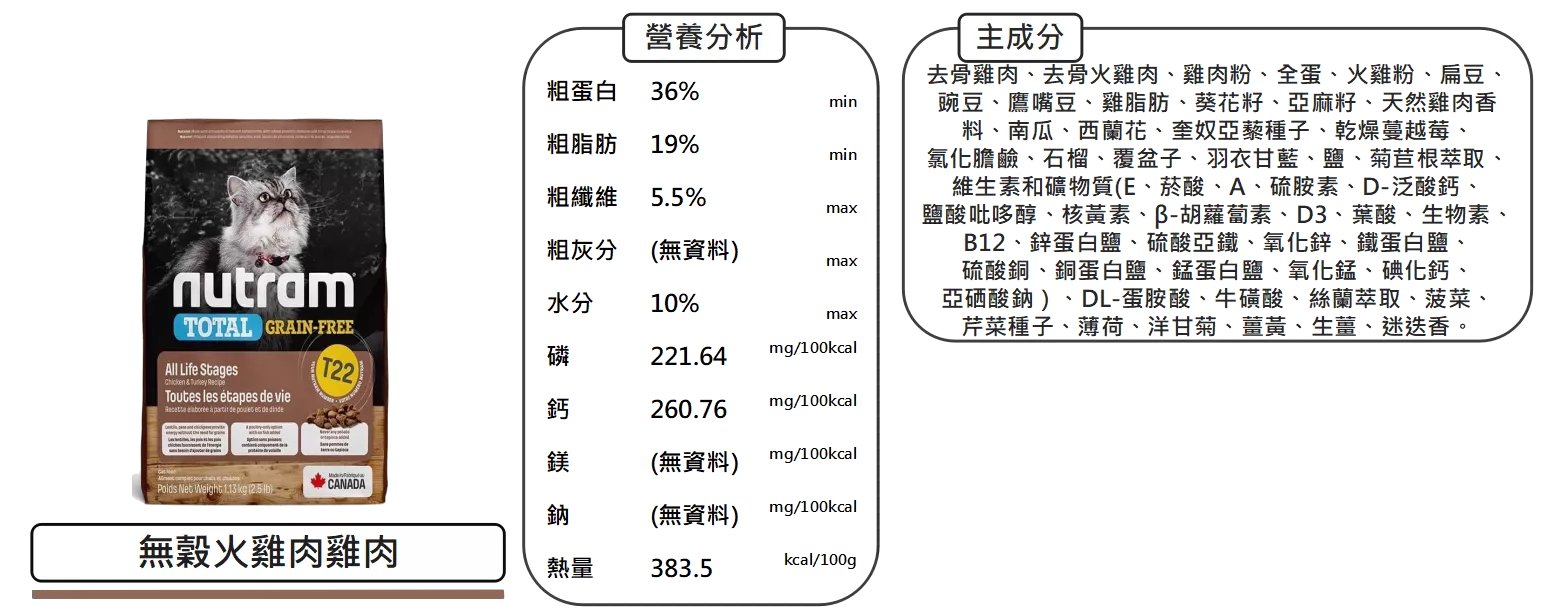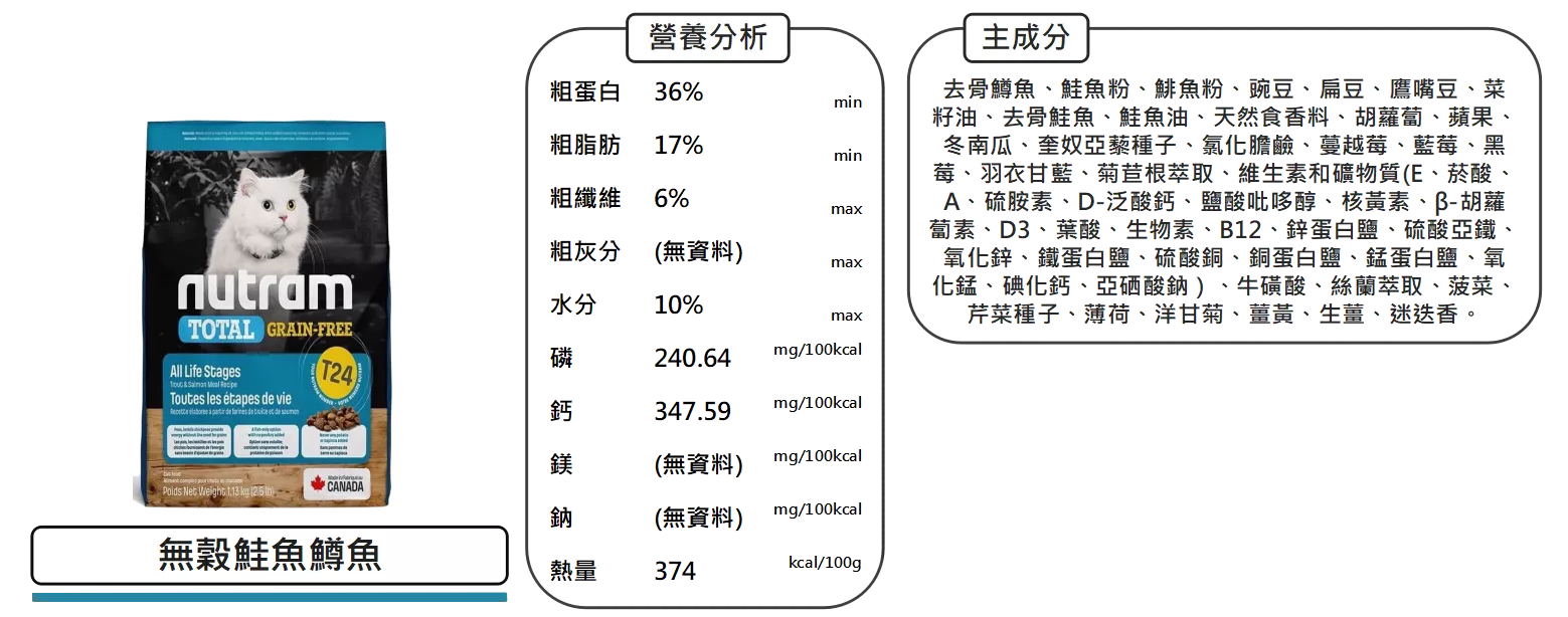 【紐頓 Nutram 貓用飼料 1.13kg 2kg 5.4kg】T22 T24 無穀 貓飼料 貓 飼料